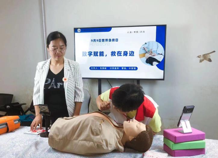 第24個世界急救日,太原市杏花嶺區紅十字會、杏花嶺區社會心理服務中心聯合開展以“數字賦能 救在身邊”為主題的直播活動,大力弘揚“人道、博愛、奉獻”的紅十字精神,開展應急救護知識普及,使廣大居民掌握基本應急救護技能,能夠在突發傷病事故現場組織自救互救并科學施救。通過講授加現場演示實操的方式向大家普及心肺復蘇順序及操作技術、氣道異物梗阻急救方法、自動體外除顫器(AED)使用、傷口包扎、燒燙傷等方面的應急救護知識和技能。