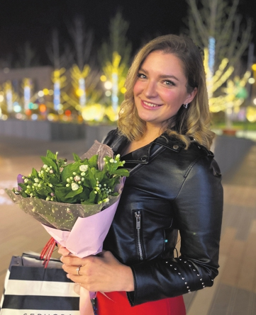Maria Safroshkina poses with a bouquet of flowers in Taiyuan. PROVIDED TO CHINA DAILY