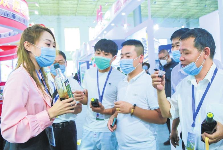A woman representing a vinegar company in Shanxi talks to local buyers during the Qinghai Investment and Trade Fair for Green Development. CAI JINFENG/FOR CHINA DAILY