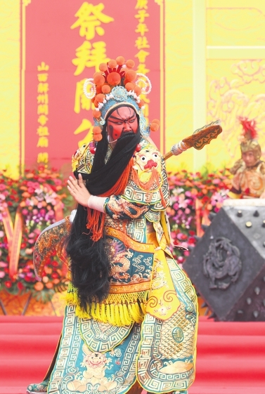An opera performer plays Guan Gong during a cultural festival at the Xiezhou Temple of Emperor Guan. HU XUGUANG / FOR CHINA DAILY