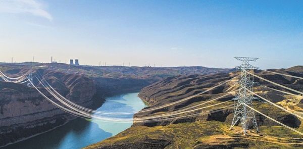 The western Inner MongoliaJinzhong electricity transmission line crosses the Yellow River to enter Shanxi province.LIU YU / FOR CHINA DAILY