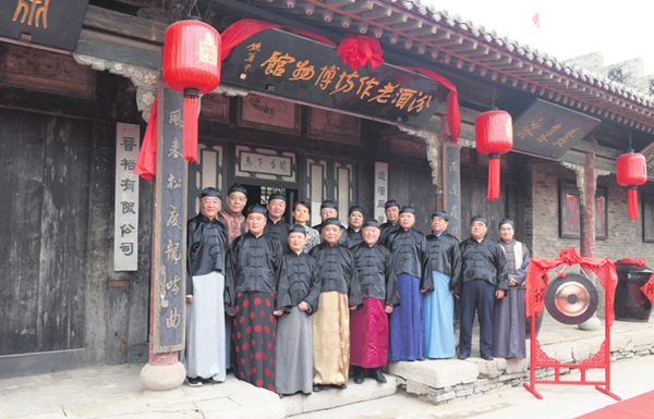 Wearing traditional clothes, executives of Xinghuacun Fenjiu Group announce the market launch of a new bajiu product made at its old distillery.CAO QINGSHENG/FOR CHINA DAILY
