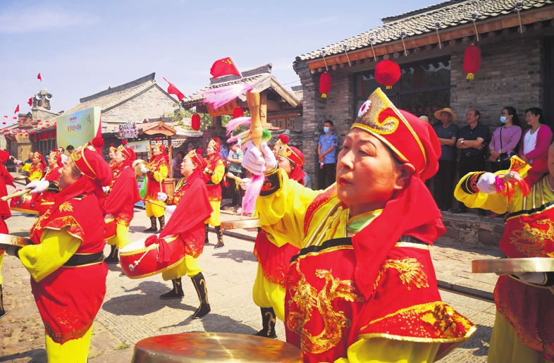 Residents in Songjiagou village in Kelang county perform drum dance to celebrate Spring Festival. ZHAO WENJUN / FOR CHINA DAILY