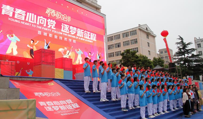 仲夏時節,在晉城職業技術學院田徑場上,一場“青春心向黨 逐夢新征程”慶祝建黨100周年青春歌會正在激情唱響,近兩千名學子用嘹亮的歌聲謳歌黨的光輝偉業。
