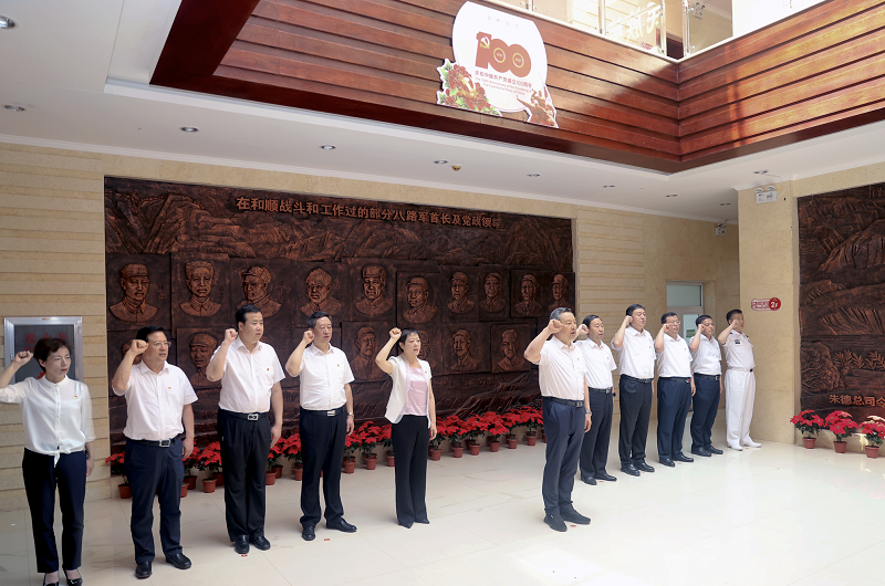 6月27日,晉中市四套班子領導在八路軍石拐紀念園現場學黨史重溫入黨誓詞。