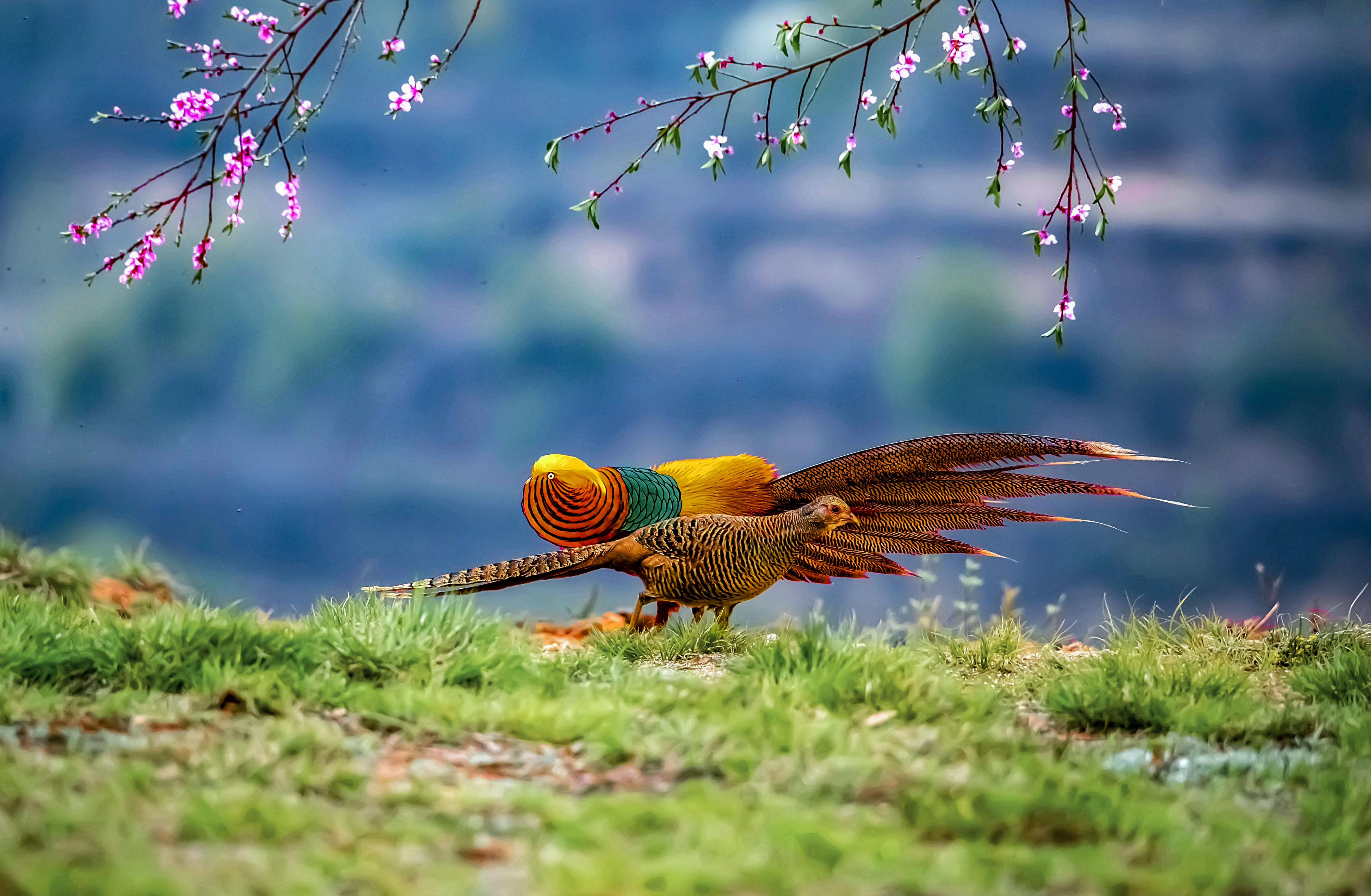 雄鳥繞著雌鳥轉圈!紅腹錦雞上演求偶名場面