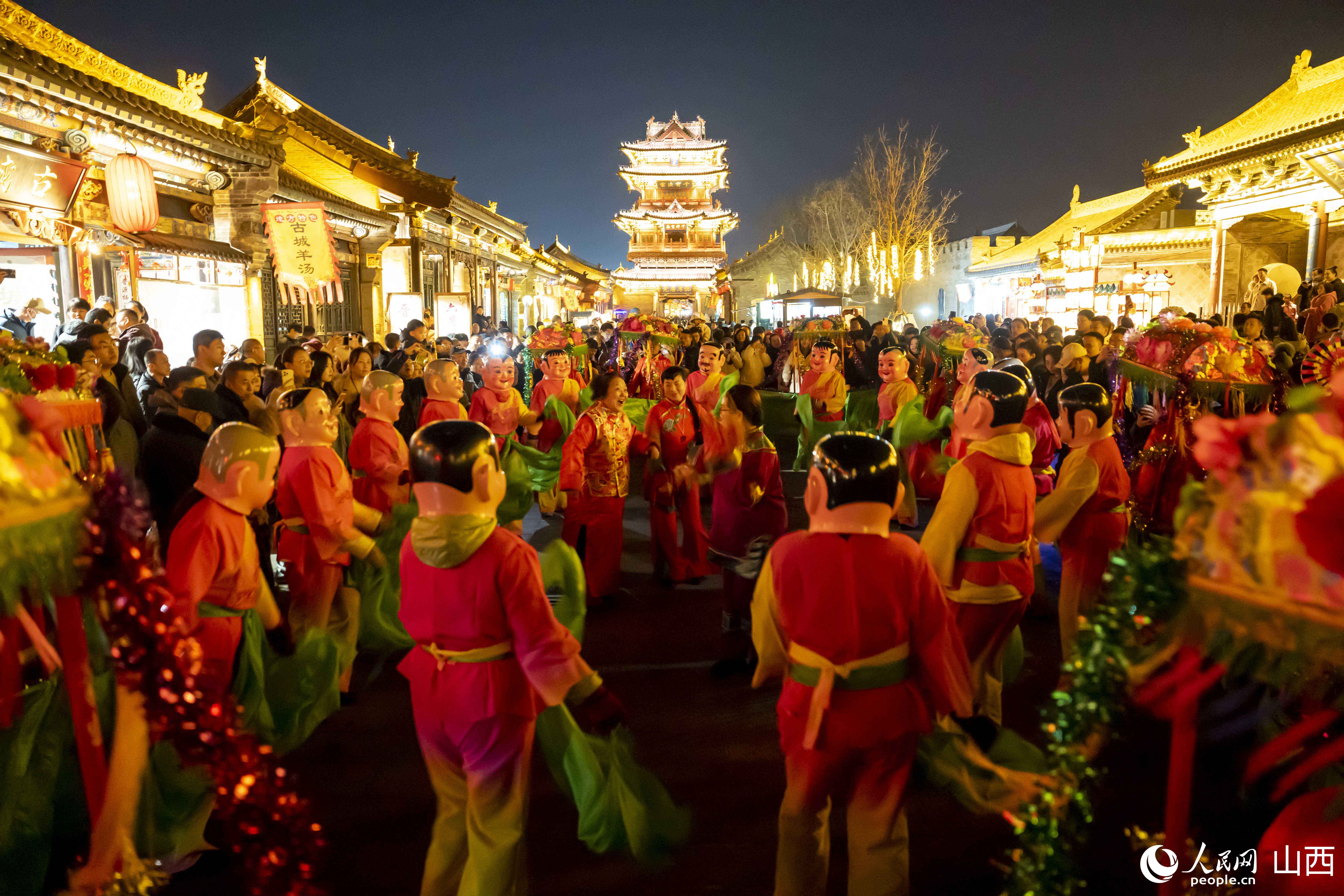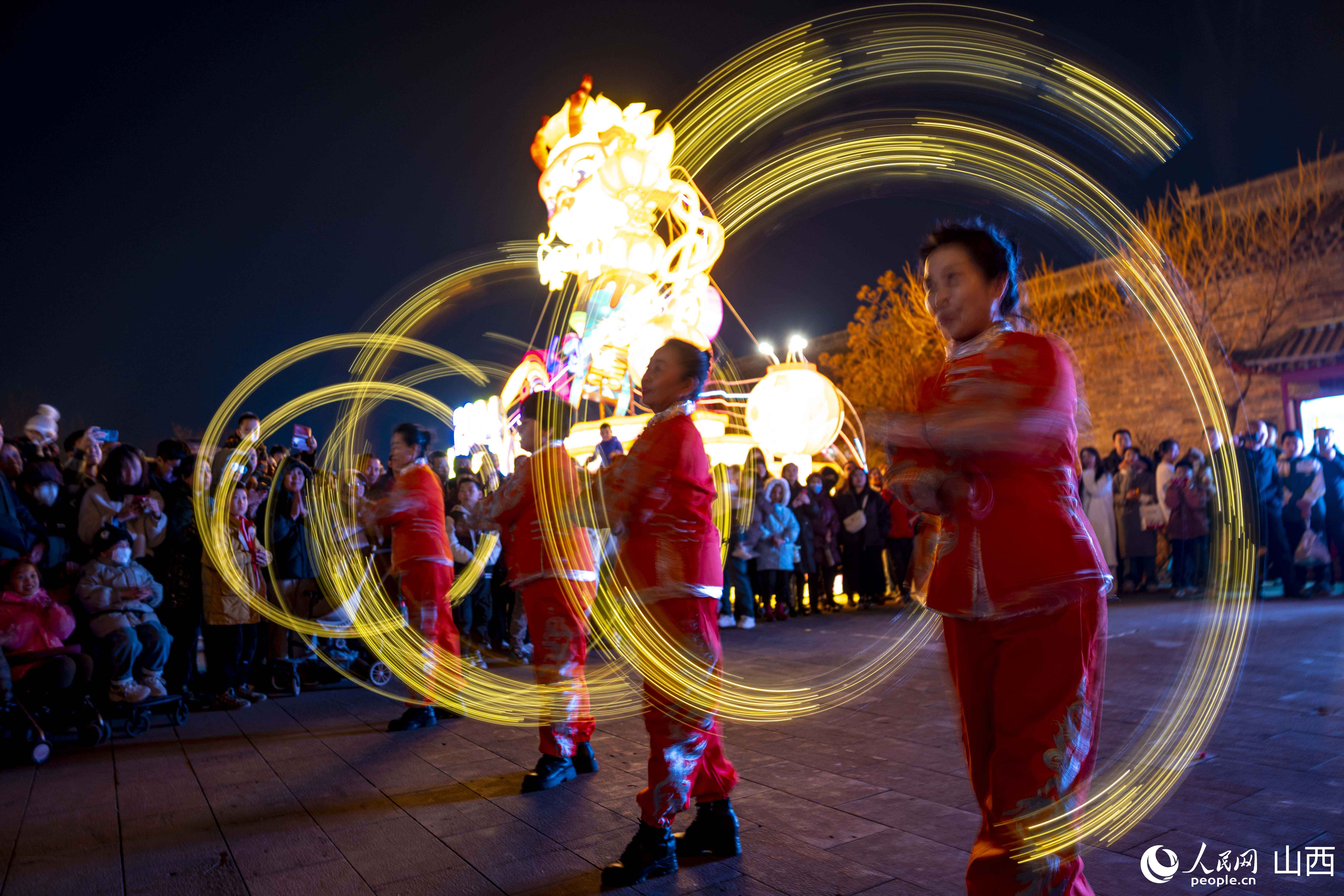 游客不僅能欣賞各式花燈,還能領略非遺民俗展演,風火流星、扭秧歌、劃旱船、晉源腰鼓、絳州鼓樂輪番上演。