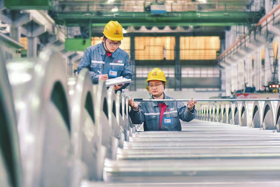 近年來,中車大同公司著力打造更好品質的機車輪對,取得良好效益。圖為該公司轉向架分廠員工進行機車輪對測量,確保產品質量。