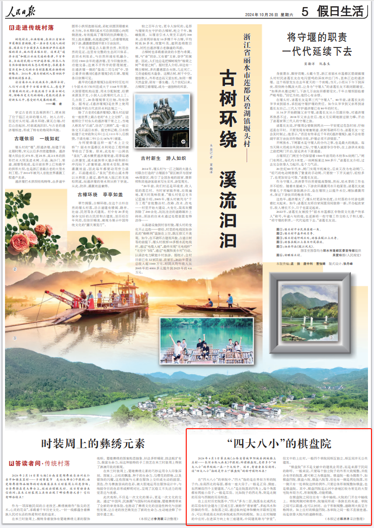 2024年4月5日第五版《山西省晉城市陽城縣潤城鎮上莊村——長河古街入畫來》中提到:所謂棋盤院,是將多個“四大八小”的單院統一在一個大院中。近日,有讀者來信詢問:這“四大八小”指的是什么?“棋盤院”的稱呼因何而來?