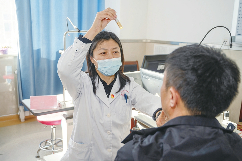 11月29日,晉中市醫學博士志愿服務團的10名博士在和順縣開展第四次志愿服務活動,為當地百姓帶來高質量醫療服務。圖為博士志愿服務團何敏博士接診一位被眼疾困擾多年的患者。(趙素萍 甄江攝)
