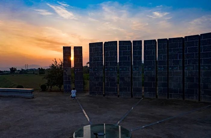 特殊節氣節令,太陽會從某個觀測縫中穿過打在觀測點上,觀測點、觀測縫和太陽剛好成一條直線。冬至,日出光束從第2道柱縫透出;春分或秋分時節,從第7道柱縫透出;夏至日,從第12道柱縫也就是最后一道柱縫透出。