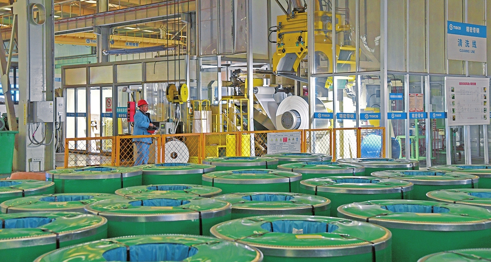 1月31日,中國寶武太鋼集團精密帶鋼公司職工堅守在崗位上趕制訂單。春節期間,太鋼各生產單位職工仍奮戰在一線,保質量保安全保進度完成各項生產任務。(王旭宏 攝)