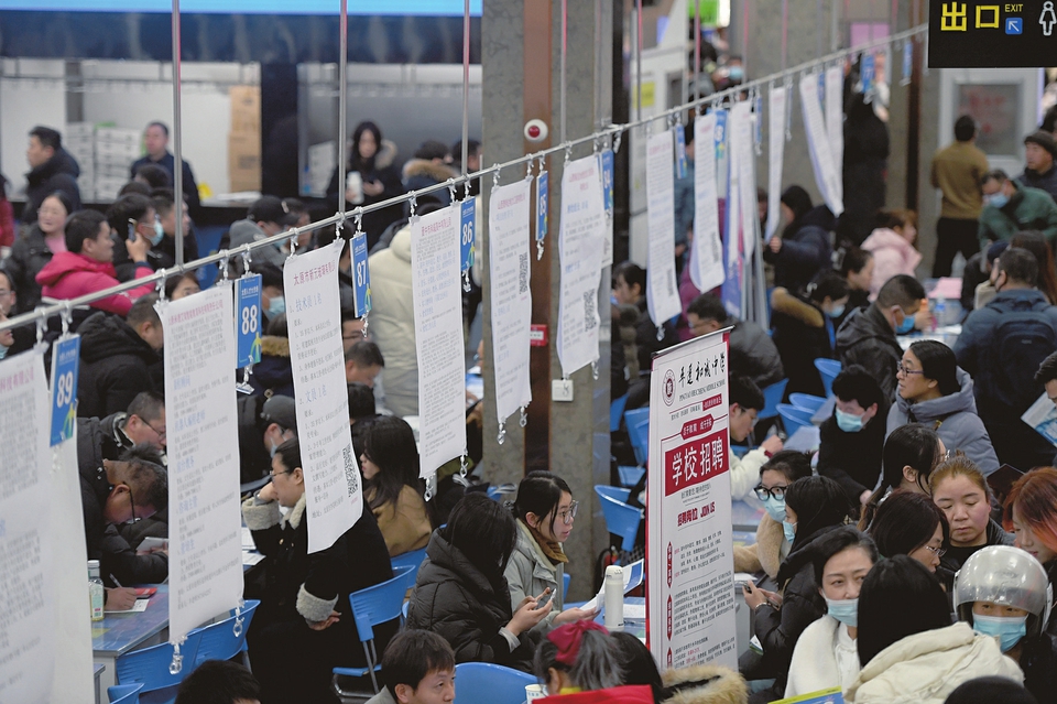 2月5日,太原人才大市場內,求職者正在尋覓適合自己的工作崗位。當日,春節后首場大型招聘會——應往屆畢業生大型招聘會在此舉行,吸引了5000多人入場求職。(記者 阮洋攝)