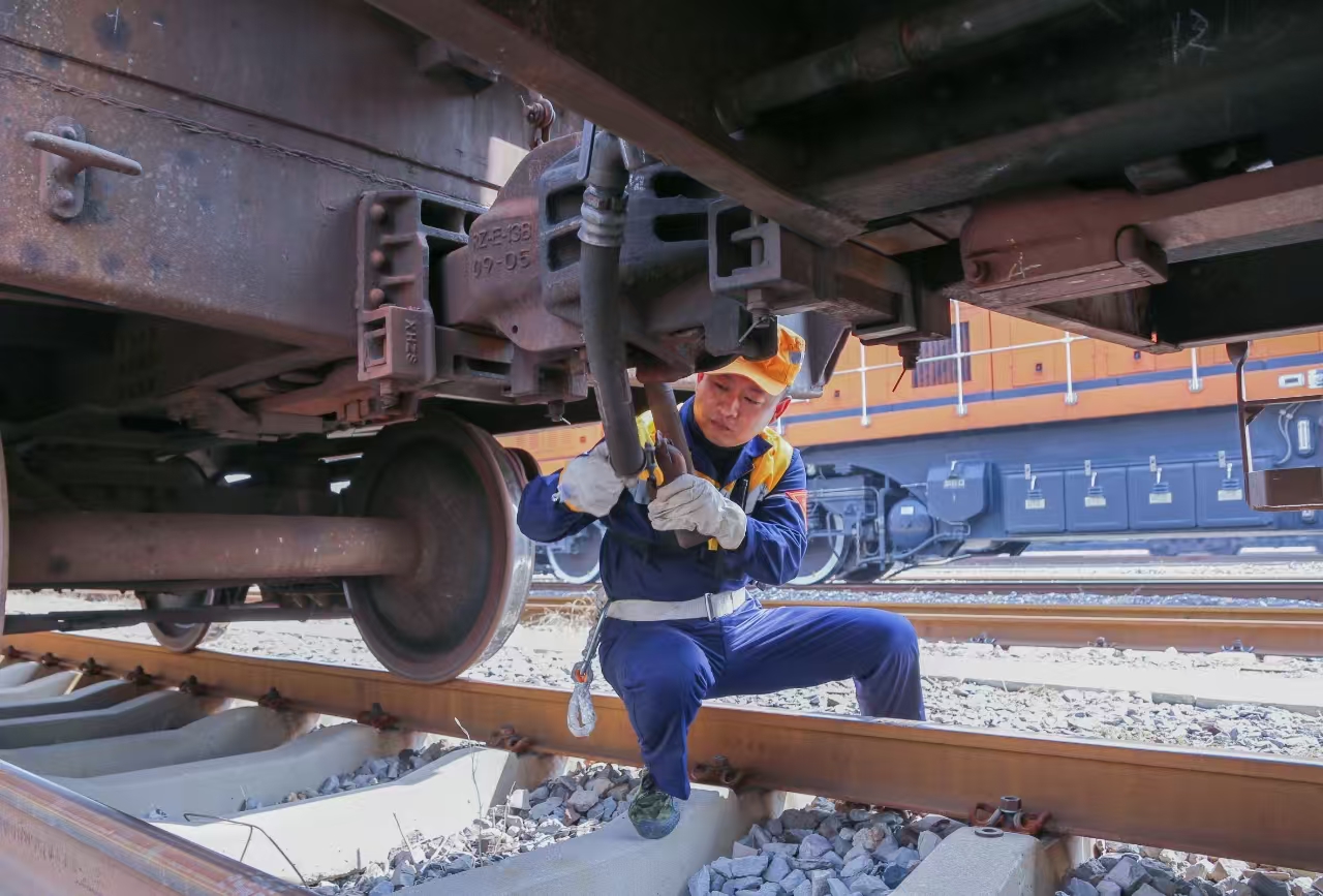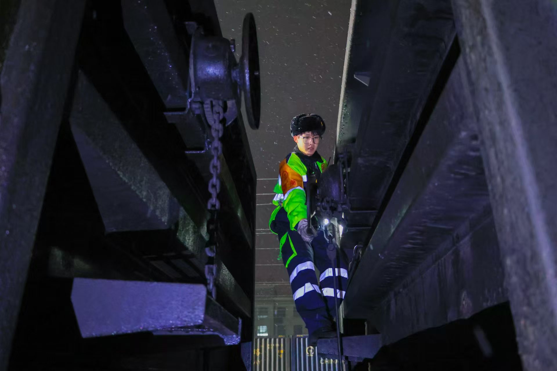 上午11點左右,寒風席卷而來,瞬間模糊了人們的視線。張路標穿著厚重的棉衣,艱難地穿梭在一節節車皮之間。