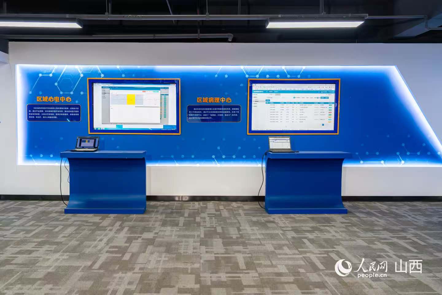 公司展廳內“緊密型縣域醫共體一體化云平臺”展示。人民網 馬夢迪攝