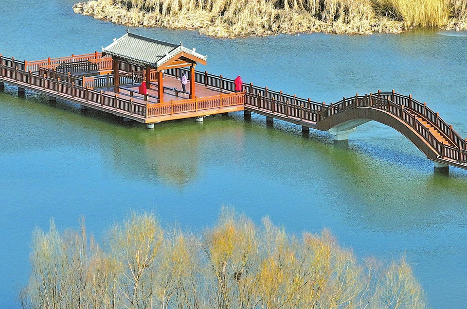 隨著氣溫回升,太原市汾河公園呈現出冰消雪融的美景。圖為2月25日汾河景區四期工程,河面冰層逐漸消融,潺潺流水破冰而出,市民們走出家門,漫步河畔,感受春的氣息。(記者劉通攝)