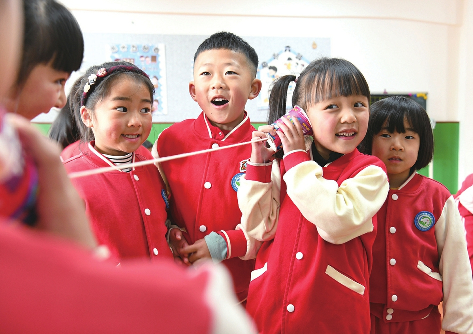 3月3日,在云南省麗江市新苗幼兒園,小朋友們在做游戲。當日是全國愛耳日,各地中小學、幼兒園開展形式多樣的主題活動,通過愛耳小課堂、互動游戲等方式,引導孩子們了解護耳知識,從小養成愛護耳朵的好習慣。新華社發