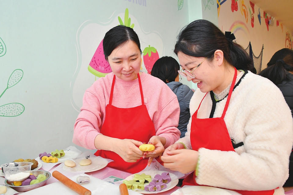 3月2日,中鐵十二局建安公司組織女職工在中華老字號“六味齋”制作桃花酥。40余名女職工一起制皮、卷油酥、包餡料,在傳統文化氛圍中迎接“三八”國際婦女節到來。記者阮洋攝