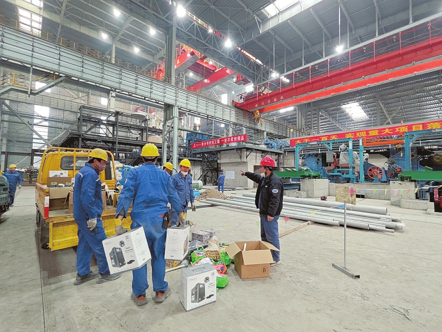 一個個待組裝的設備整齊排列,一輛輛工程車來回穿梭作業……走進宏達集團年產100萬噸薄帶鑄軋項目工地,機器轟鳴,焊花飛濺,數百名工人分布在鋼架“叢林”間進行鑄機、軋機等設備的安裝,不遠處,“爭分奪秒搶工期,一絲不茍創精品”的橫幅格外醒目?! ?/p>
