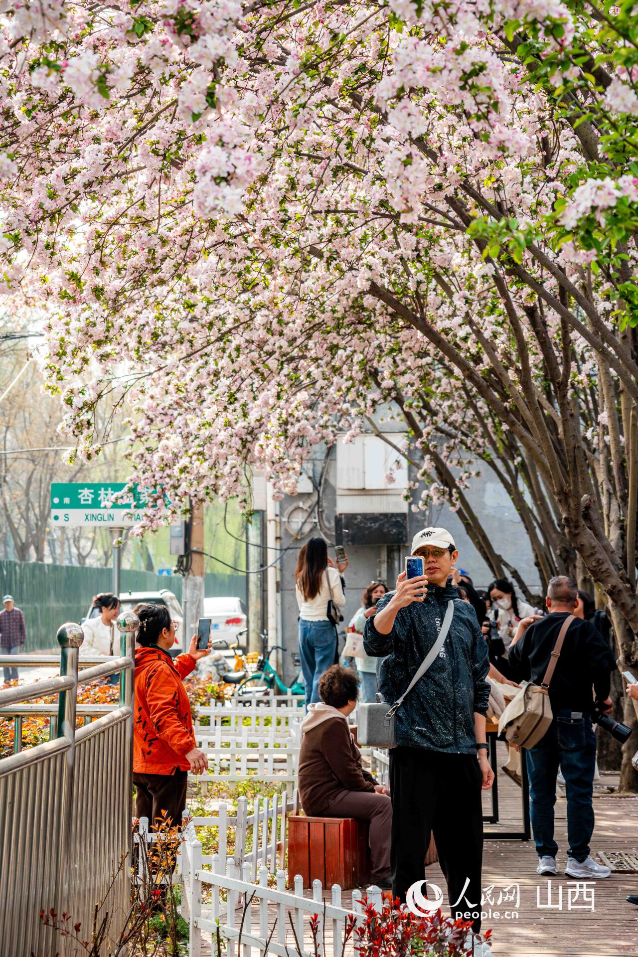 春深時節,龍潭公園、迎澤公園等相繼上演"海棠盛宴",解放路等主干道兩側的海棠景觀帶也漸入佳境。暖暖春日里,花影搖曳間,越來越多的市民走出家門,書寫著現代都市人花相映的生動圖景。