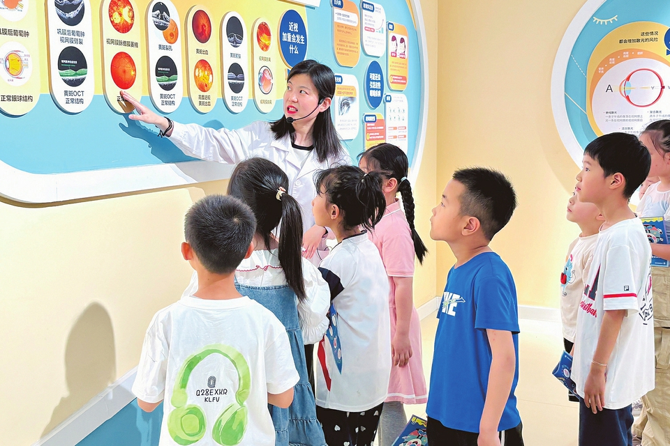 6月5日,醫務人員正在為小朋友們講解愛眼護眼常識。當日,在第30個全國“愛眼日”到來之際,由太原市衛健委牽頭的太原市青少年近視防治中心在太原康明眼科醫院正式掛牌。該中心將構建一體化防控體系,做好防控、診療、管理工作,守護青少年用眼健康。(盧嫄 攝)