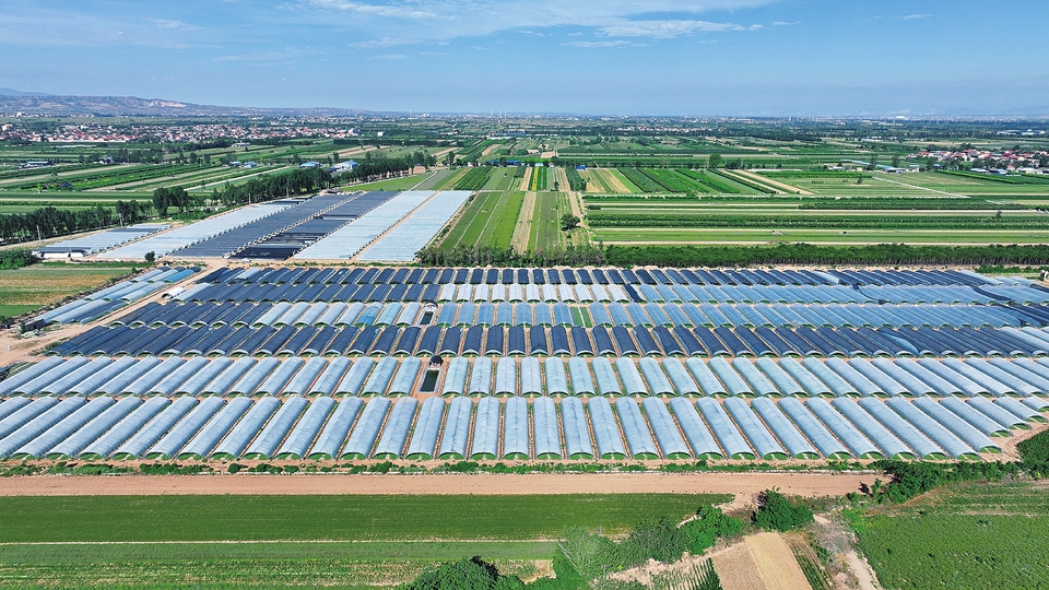 7月5日拍攝的稷山縣永昌種植農場西瓜種植基地。該基地占地500畝,建設850個大棚,通過應用有機肥、科學控溫、水肥一體化技術,種植的西瓜皮薄瓤脆、甘甜多汁,吸引客商爭相采購。(栗盧建攝)