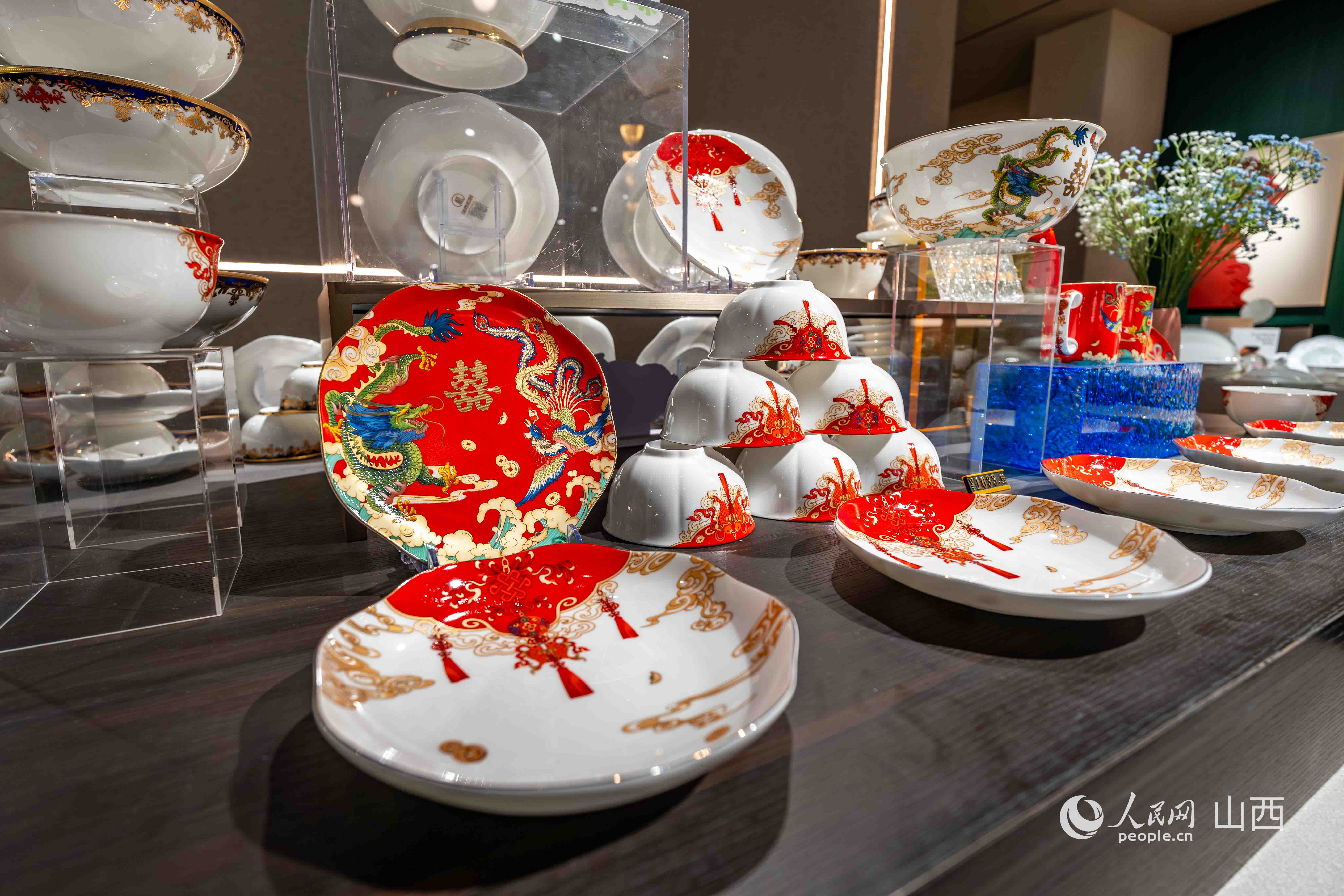 “別再以為盤子碗只用來盛飯啦!”王希畢拿起一只“星爍”系列茶杯,杯身轉動時,細碎的光斑像把星星揉進了瓷里,“現在講究‘美食配美器’,器皿得有看頭,吃飯才更有滋味?!?/p>