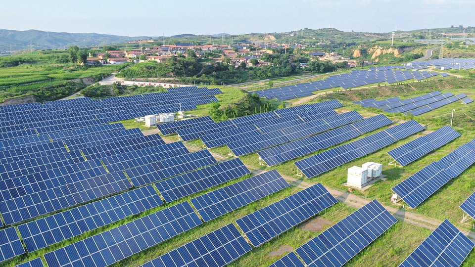 近日,盂縣牛村鎮教場村光伏基地,一排排光伏發電板在陽光照射下熠熠生輝,源源不斷地輸出綠色電能。近年來,盂縣通過利用荒山坡、廠房屋頂建設光伏電站,實現農村生產生活節能減排,推進能源綠色低碳轉型。(程瑜攝)