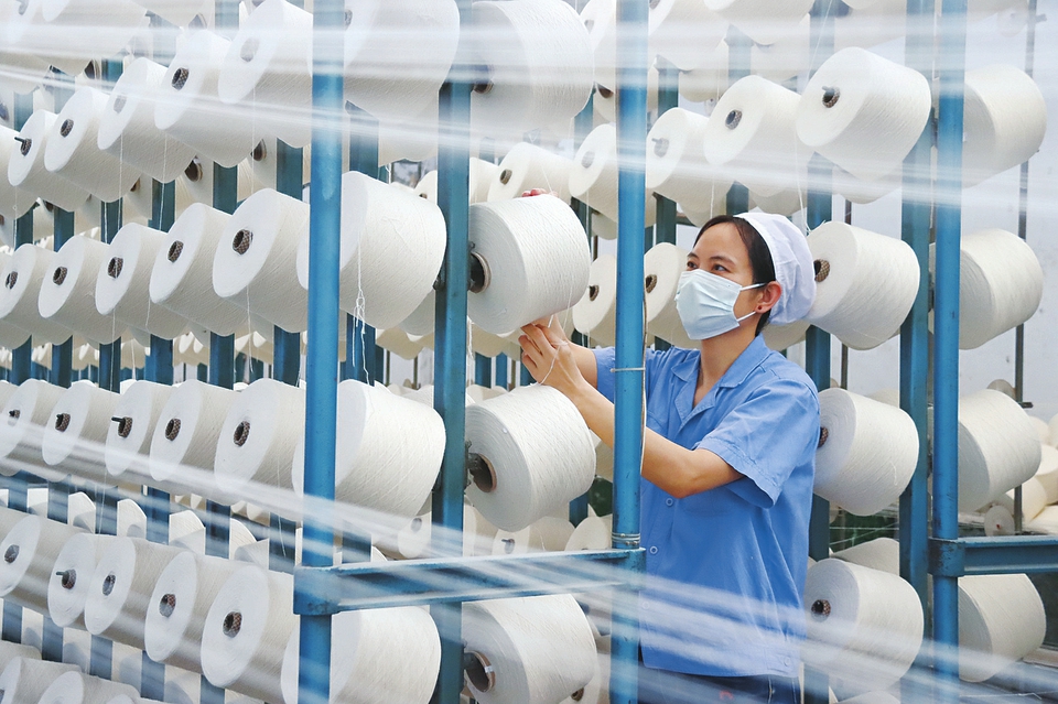 8月4日,山西綠洲紡織有限責任公司織造車間整經工序工人正在趕制出口訂單。近年來,晉城市通過實施科技創新、減稅降費、助企紓困等政策,助力企業融入“雙循環”新發展格局,拓展國內外市場份額,實現產銷兩旺。(陳來全 攝)