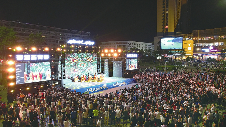 傍晚時分,市民從四面八方涌向人民廣場,觀看精心準備的文藝節目。通訊員攝