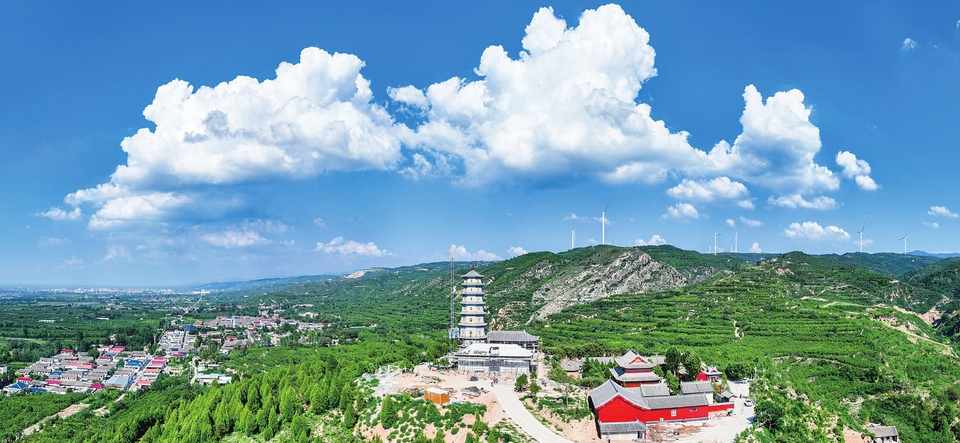 8月18日,風和日麗,修繕后的夏縣柏塔寺古塔在藍天映襯下與周邊綠樹相映成景,蔚為壯觀。(姚中吉攝)