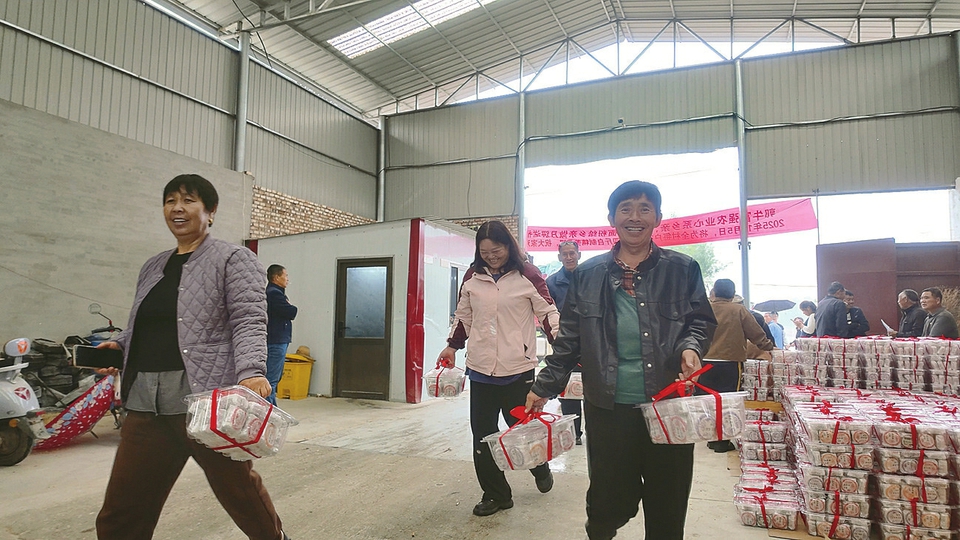 ②10月5日,夏縣南大里鄉郭牛村富強農業合作社向全村600多戶家庭每戶發放4斤月餅,將節日的祝福送至村民手中。牛瑞枝 攝