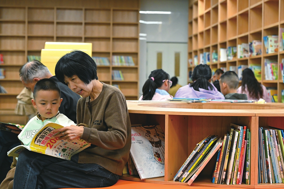 ③10月6日,長治市圖書館內,家長帶著孩子們品讀書香,度過假日快樂時光。梁棟 攝