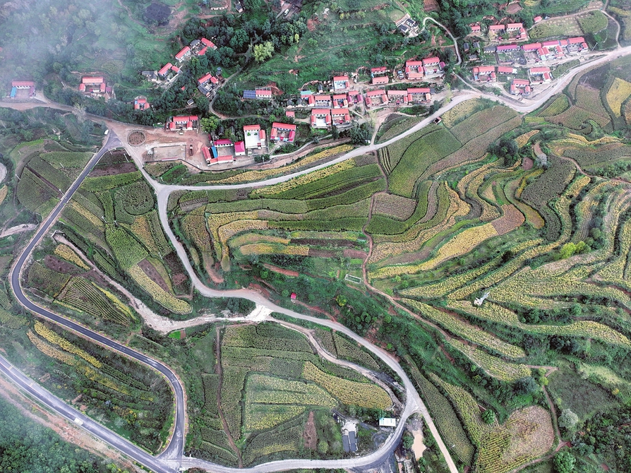 10月10日,武鄉縣山間云霧繚繞,太行一號旅游公路如長龍般蜿蜒盤旋。公路串起的民居錯落分布,與梯田、山林共同勾勒出一幅秋日鄉間田園畫卷。(李勇 攝)